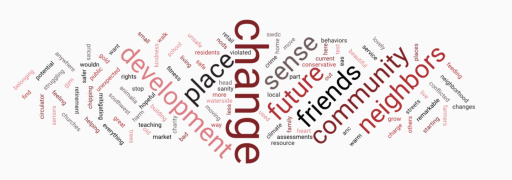 My time partnering with the SWBID has been fascinating, thought-provoking, and rewarding. Firstly, it has been nice to hold deep and interesting conversations with and establish relationships with members of the Southwest DC community. So far, I have learned a lot about the diverse perspectives of individuals’ living situations in SW as well as different interpretations of past and ongoing developmental projects in the area. Due to preconceived ideas, I went into the neighborhood believing that the Southwest residents who have been living there for generations and who are predominantly Black/African-American (not the recently-arrived/predominantly white residents) would speak poorly of the recent projects, since gentrification often disproportionately impacts communities of color. Although the developments do spark a lot of anxiety and have unfortunately impacted the majority of the old residents’ living situations negatively, there were surprisingly more mixed feelings than I anticipated. One resident, for example, expressed her frustration with rising housing prices and gentrification, as expected. However, another resident stated he has been benefiting from the developments due to increased safety and better quality of life.